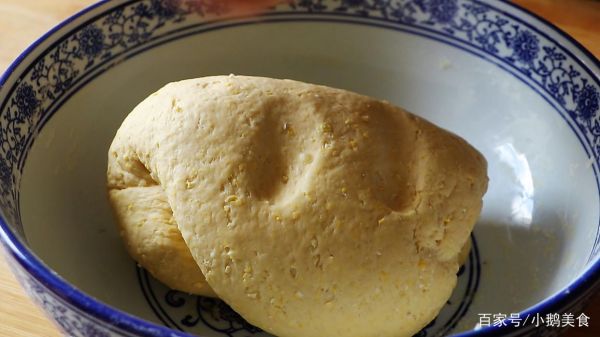 3、玉米鸡蛋净重约250g,面粉大概需要400g,分次少量加入面粉,搅拌成絮状,揉成软硬适中的面团,尽量多揉一会,尽可能揉光滑一点。
