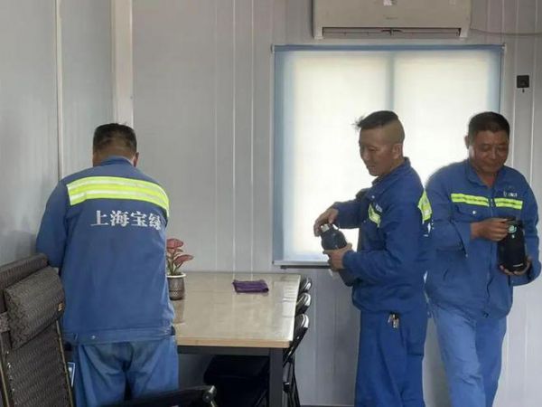 绿化养护工作人员作为一线的户外工作者,面临最大的困难就是要兼顾作业距离和员工的休息,2024年初,上海宝绿园林绿化有限公司工会了解到工会对一线职工工间休息室的相关政策,于是企业因地制宜,在原有休息室的基础上进行了全面的改造升级,建成了由八个定型化的标准集装箱改造而成的职工工间休息室,这里集“工间休息、能量补充”等服务功能于一体,最大程度地实现了“进门能办公,坐下能休息,水电有保障、网络时时通”。站内还安装了空调、微波炉和冰箱等电气设备,中午休息也配备了躺椅,确保一线作业人员能够获得舒适便捷的休息空间。