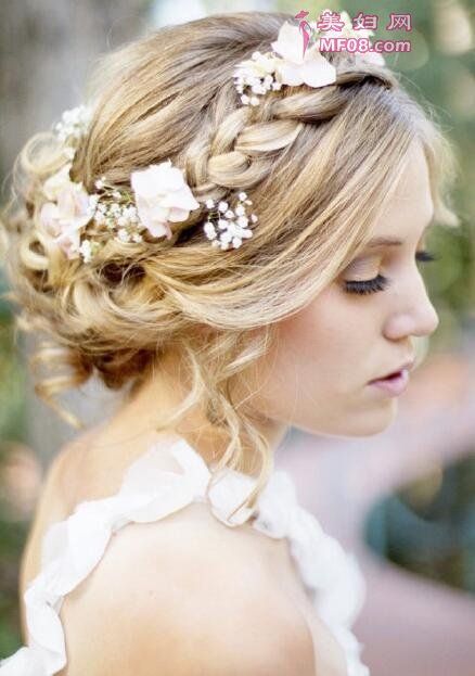 做好的发型带着一个花环,女孩的浪漫气息和女人的妩媚气息尽在其中,也是一款值得选择的发型。