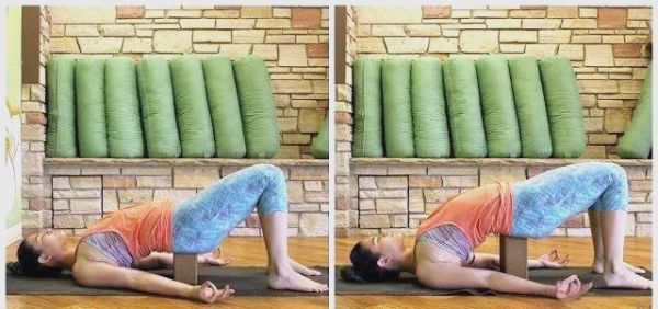 利用砖块支撑,桥式促进背部释放压力,提高身体舒适度。