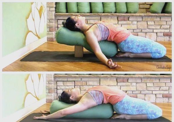通过支撑后背,这个姿势提供深度放松和脊柱舒适。