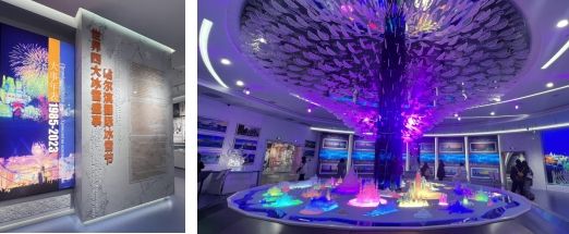 冰雕展陈区讲解员深度介绍了哈尔滨冰灯60年以来的发展历程,从每一件精雕细琢的冰雕艺术品中汲取设计灵感,为学生们进行冰雕设计时提供审美经验与制作手段。学生通过视频了解到通过砌筑、堆垒、雕镂、浇冻和镶嵌技术,以冰为载体,水为粘合剂制作出各种精美的冰雕艺术作品。通过摄影图片能看到在夜晚灯光的映衬下,形成形、光、声、动和谐统一的景观。在交流过程中,讲解员热情地解答了学生们对于冰雪雕设计与制作的各类疑问。学生们通过参与对冰灯冰雕制作技艺这项非物质文化遗产产生浓厚兴趣,都跃跃欲试准备在即将举办的2024年第8届“广厦杯”哈尔滨·国际大学生冰雕艺术大赛中大展身手。学生纷纷在展陈区对哈尔滨广厦学院冰雕大赛展示位置合影留念。
