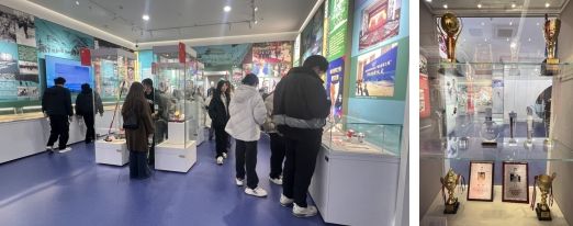 在科技感十足的冰雪运动展示区,学生们目睹了冬奥会冠军们的拼搏历程,见到了冠军们的训练用品及获奖奖牌,学生们将深深的敬意与自豪感留在此处。