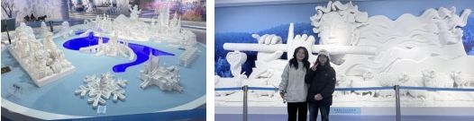 雪雕展示区参观过程中,学生们对“雪”这种特殊材料的质感表现出了浓厚的兴趣。他们通过雪博会历届作品仔细观察了不同造型的艺术处理与细节制作,学生们更是复原的雪雕作品,沙盘中的雪雕模型所吸引,纷纷讨论起各种主题风格的雪雕作品表现手法与装饰元素制作呈现。
