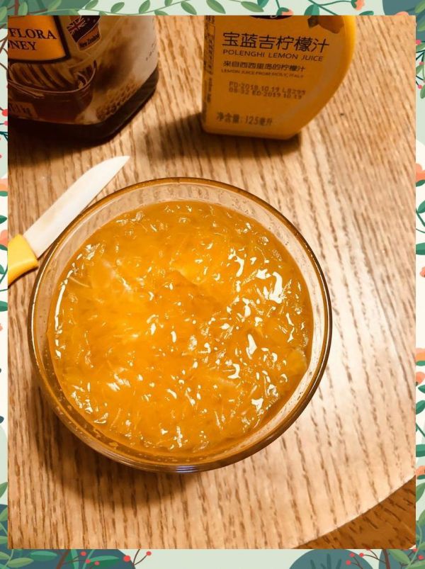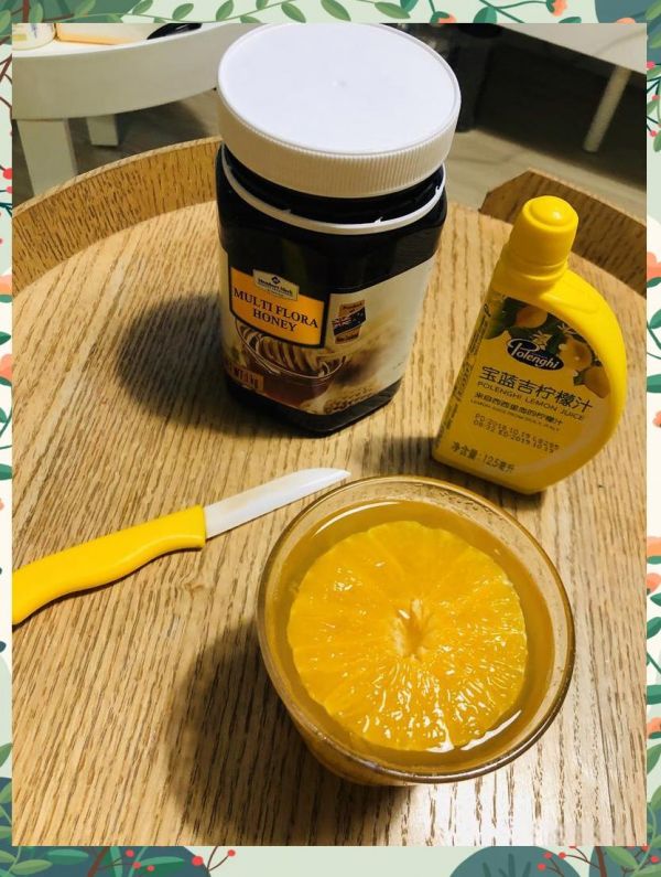 橘子1个、蜂蜜1勺、柠檬汁半勺