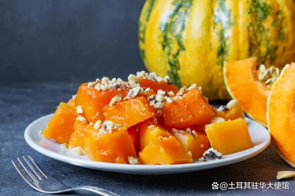 南瓜甜点(Kabak Tatlisi)是另一种天然甜味的美食,数百年来一直是土耳其美食的一部分。在南瓜产量丰富的爱琴海和马尔马拉地区,它尤其受人们喜爱。它通常搭配芝麻酱和核桃,既增加了营养价值,又提升了风味。