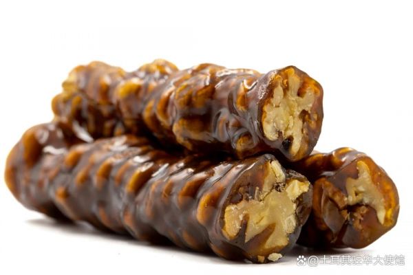 坚果美味(Sucuk Lokum)数百年来一直是土耳其糖果的一部分。与传统的土耳其软糖(Lokum)不同,它口感软糯且糖分高,这种变体是将坚果串在一起,再蘸上浓稠的水果糖浆,使其成为一种更健康、能补充能量的美食。