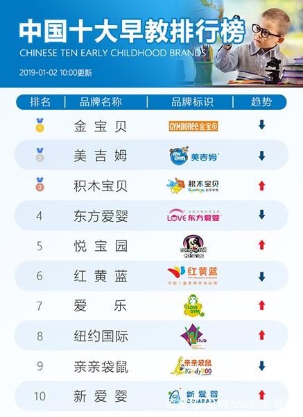 从《中国早教蓝皮书》发布的中国十大早教排行榜来看,依次排名为:金宝贝、美吉姆、积木宝贝、东方爱婴、悦宝园、红黄蓝、爱乐、纽约国际、亲亲袋鼠、新爱婴。早教市场品牌格局更加明朗。由此可见,目前一二线城市品牌竞争已经进入白热化状态,一线大早教品牌凭借自身优势正在不断吞噬市场,挤压中小品牌的发展。