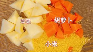 2.小米清洗干净和胡萝卜苹果放入锅里,加入适量的清水,大火烧开转中小火40分钟!