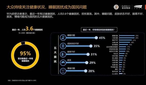 《2024情绪与健康睡眠白皮书》数据显示,95%的受访者表示,最近一年有健康困扰。其中,睡眠问题位居第一,情绪问题位居第五,超过一半的人同时存在睡眠和情绪困扰。80%被睡眠障碍、情绪问题困扰的人,尚未开始向专业人士求助。