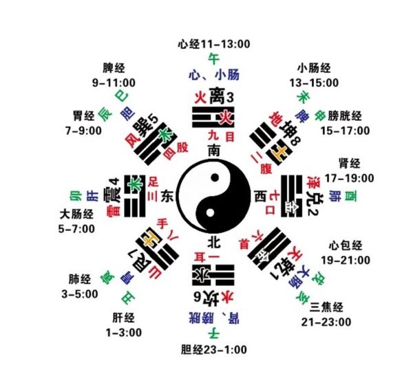 太极:用太极图诊断人体的阴阳。运用八卦方位,来定五脏六腑的位置。分为:木、火、土、金、水。