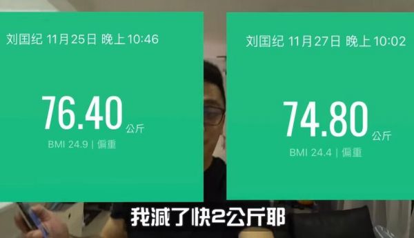 上图就是挑战之后的体重,此时我们看他的体重是74.8公斤,接近减掉了2公斤的体重。