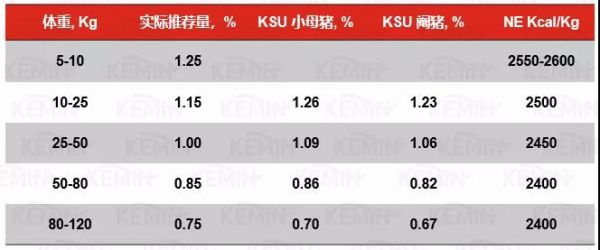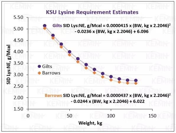 图4 堪萨斯州立大学推荐猪只赖氨酸需求量
