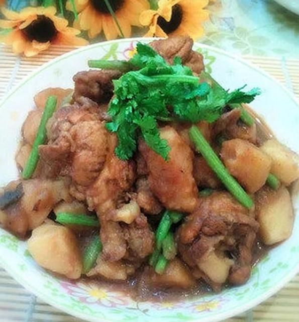 红烧鸡肉焖土豆寓意大吉大利。鸡肉是高蛋白低脂肪的食物,土豆富含碳水化合物和维生素。把土豆去皮切块、香菇切片,鸡块焯水洗净。锅中倒油,炒香鸡块,加入葱姜、香料和调料上色,放入土豆块,加开水炖煮二十分钟,最后调味收汁,鸡肉鲜嫩,土豆软糯,香味十足。