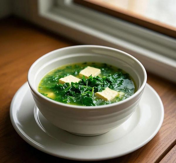04.加入荠菜:待豆腐煮熟后,加入荠菜段,快速煮至荠菜变软。