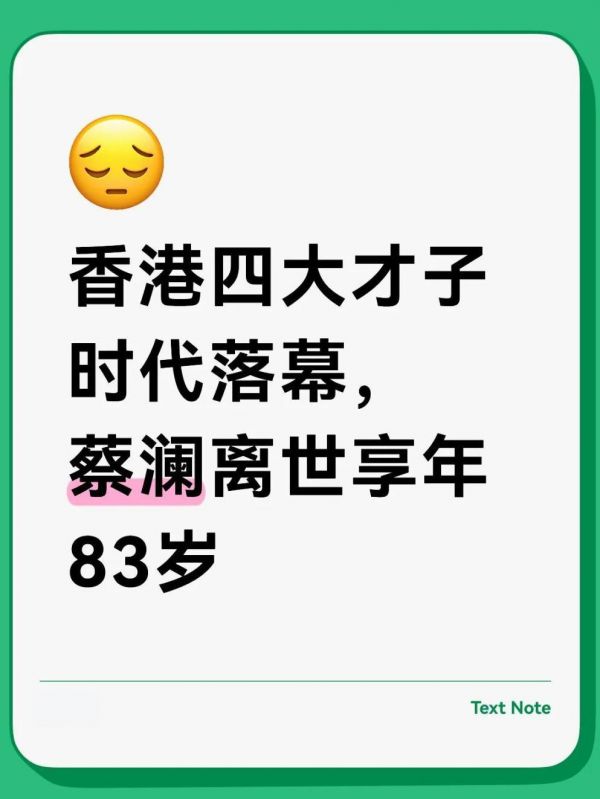 蔡澜先生逝世,才子陨落文化界痛失泰斗 2...全文