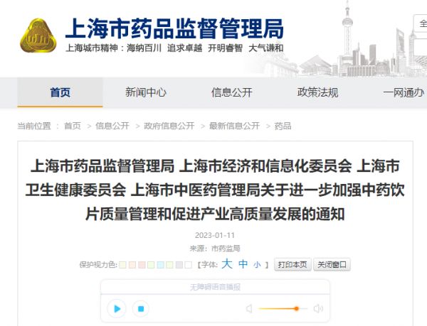 上海市四部门联合发布通知 进一步加强中药饮片质量管理和促进产业高质量发展