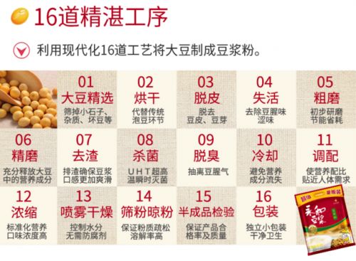 在永和豆浆看来,健康的前提是品质。为了确保豆浆饮品的品质,永和豆浆在生产上严格按照国家及行业进行,工艺上运用脱皮,去渣,脱臭,杀菌灭酶,喷雾干燥技术等16道先进工序,萃取大豆中的精华,使大豆中的营养物质可以得到很好的保留。由于制作过程中使用了脱渣工艺,因此制成的豆浆营养价值相对更高,口感也更加得丝滑细腻。