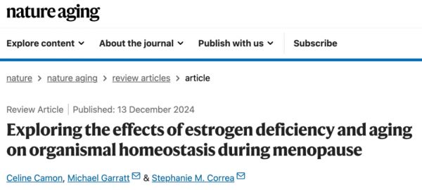 雌激素信号在衰老过程中下降,从而破坏机体内稳态。描述雌激素的作用对于理解人们在更年期过渡期经历的变化很重要。加州大学洛杉矶分校的研究人员发表了一篇题为:Exploring the effects of estrogen deficiency and aging on organismal homeostasis during menopause 的综述文章【5】,概述了雌激素信号在维持内稳态和更年期平衡失调中的作用,探讨了激素下降和衰老对健康变化的贡献,并讨论了当前和新出现的治疗方法。