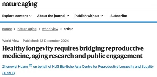 最后,新加坡国立大学的研究人员发表了一篇题为:Healthy longevity requires bridging reproductive medicine, aging research and public engagement 的World View文章【8】,指出健康长寿需要在生殖医学、衰老研究和公众参与之间架起桥梁。