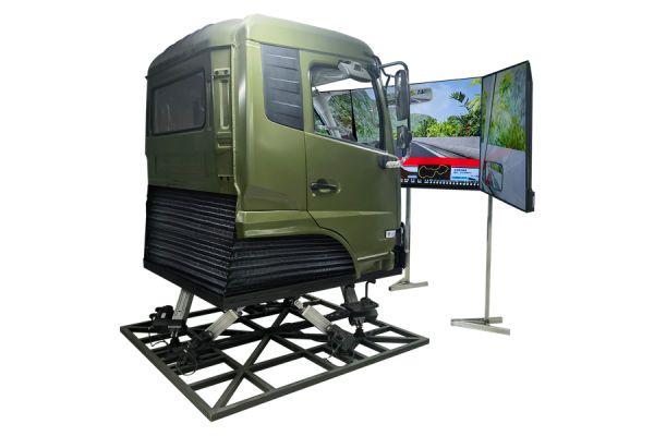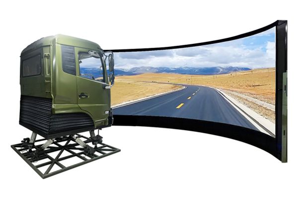 这款模拟器的驾驶舱堪称,直接采用东风天锦实车座舱,搭配模拟实车变速箱档位手球的变速器,档位设置与实车别无二致,让你瞬间沉浸于真实的驾驶操作之中。离合器的结合、分离以及模拟场景半联动状态清晰可感,分级输出使操作更加精准细腻。环保防火外壳包裹下的驾驶舱内,专业座椅美观耐用且可灵活前后调节,转向器、油门、刹车等操纵机件一应俱全。转向器转向范围宽广达 0 - 1060 度(数字量分级不小于 180 脉冲 / 圈),反应灵敏且能自动回正,油门、刹车信号分级或无级输出,每一次操作都如驾驶真车般精准流畅。传感器信号精准无误,声音与视像同步变化,滞后时间小于 50 毫秒,力度变化真实可感,为你营造出沉浸式的驾驶氛围。