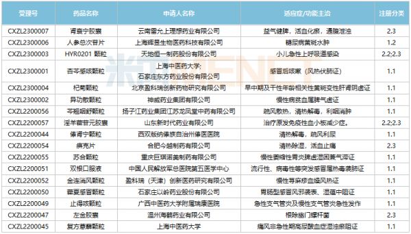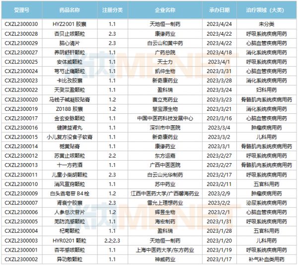 2023年至今中药新药获批临床情况