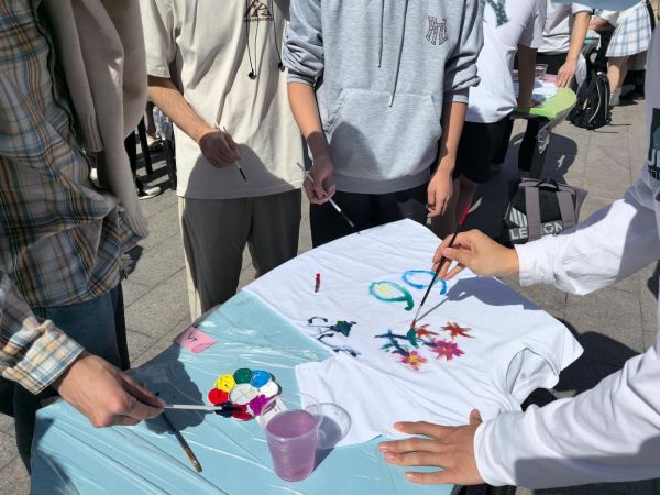 活动现场,参与者领取纯白T恤及彩绘工具后,以画笔为媒,将内心世界具象化为缤纷图案。从抽象线条到具象风景,从个性签名到集体创作,一幅幅作品在春日暖阳下跃然衣间。活动负责人表示:“彩绘不仅是艺术表达,更是一次心理疗愈的实践。我们希望通过非语言的方式,让学生更自如地展现情绪与思考。”