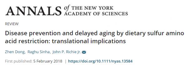 令人振奋的是,近期发表在 Annals of the New York Academy of Sciences上题为“Disease prevention and delayed aging by dietary sulfur amino acid restriction: translational implications”的综述指出,“饮食中限制含硫氨基酸给动物带来的长寿和健康益处”很有希望被转化到人类中。作者们在文中归纳了以下两点证据: