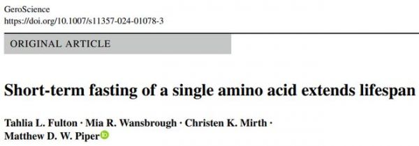 [1] Fulton, T.L., Wansbrough, M.R., Mirth, C.K. et al. Short-term fasting of a single amino acid extends lifespan. GeroScience (2024). https://doi.org/10.1007/s11357-024-01078-3