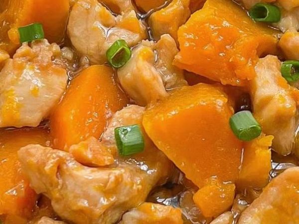 1、鸡腿去骨去皮,洗净后切成小块,放入姜丝、葱段、酱油、淀粉和食用油,抓拌均匀腌制十分钟。南瓜削掉外皮,清洗干净后切成小块。