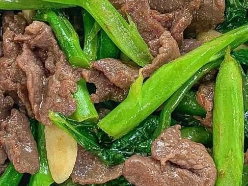 准备食材:芥兰,牛肉,蒜片。