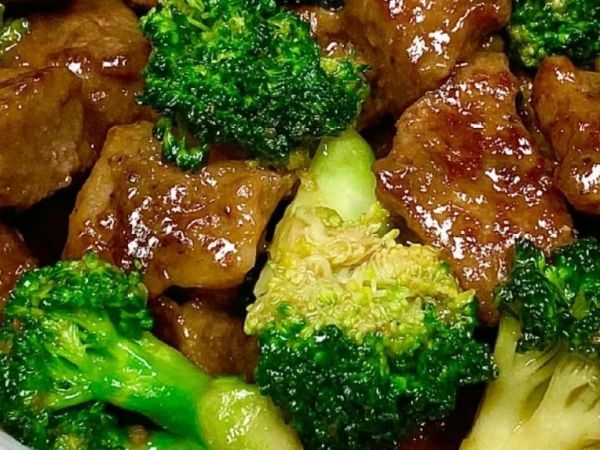4、起锅烧油,油热后放入腌制好的牛肉翻炒,炒熟后放入西兰花翻炒均匀,加入生抽、食盐和白糖调味,翻炒均匀炒至入味即可出锅装盘开吃。