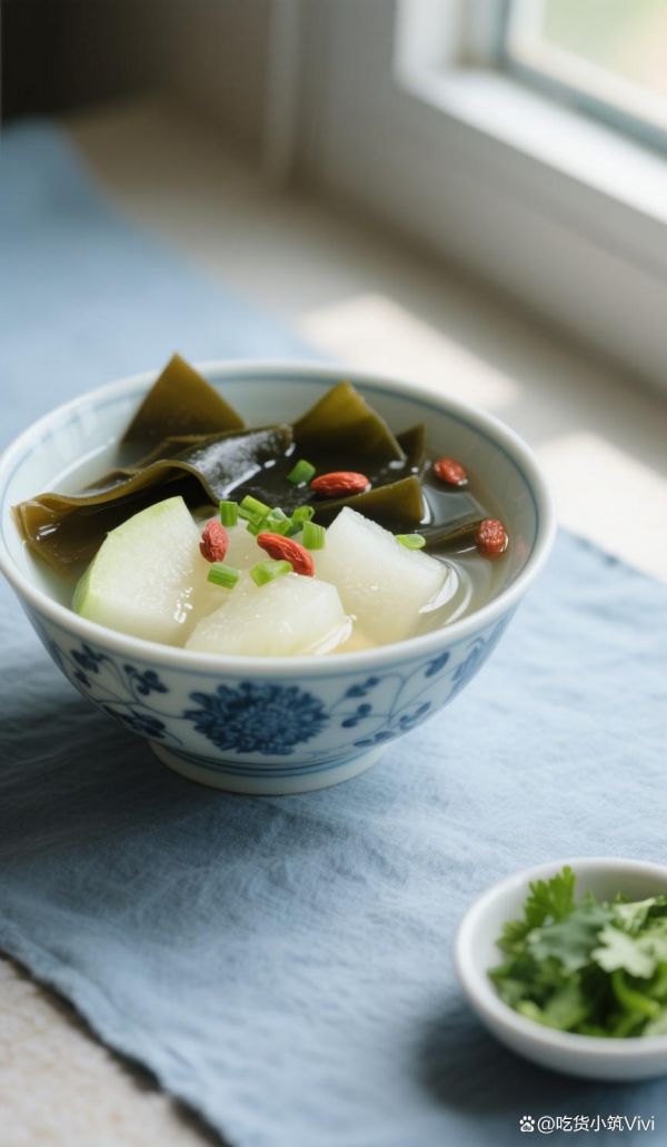 冬瓜清热利尿,海带富含矿物质,二者搭配煮汤,清淡不油腻,能帮助调节身体水分,是盛夏清热养生的好选择。