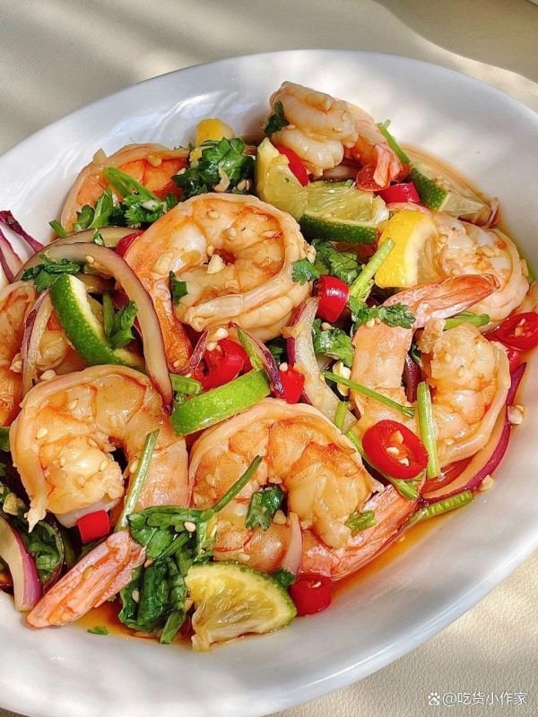 做法:虾仁冷水解冻5分钟,沥干;所有食材混合,淋酸辣汁,撒花生碎。酸辣开胃,高蛋白低脂,适合健身党。