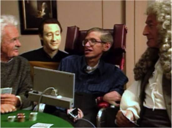 1992年,霍金在《星际迷航:下一代》中客串自己,与扮演牛顿、爱因斯坦的演员一起打牌,只不过这并非是霍金的首次参演影视剧作品,镜头并不多,而且也没让人留下什么深刻的印象。据称这是他的大银幕“处女秀”。