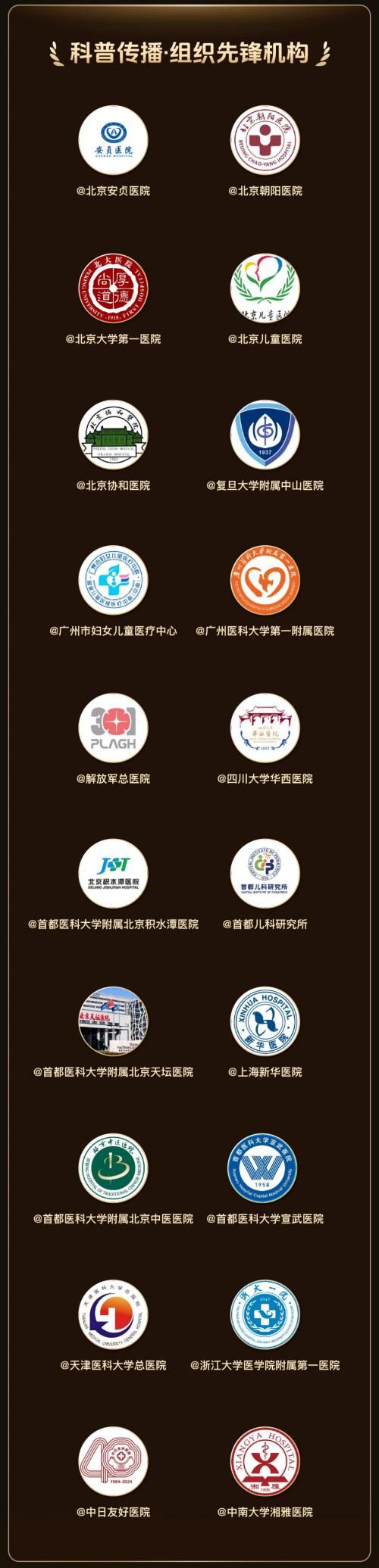 与此同时,越来越多的全国大型医院也在踊跃拥抱新媒体平台。其中不乏@北京协和医院、@上海中山医院、@广州医科大学第一附属医院、@中南大学湘雅医院、@四川大学华西医院 等全国明星医院。这些医院坚守在守护生命健康的第一线,线上也通过抖音科普各类疾病治疗和预防知识,入选了“科普传播·组织先锋机构”名单。