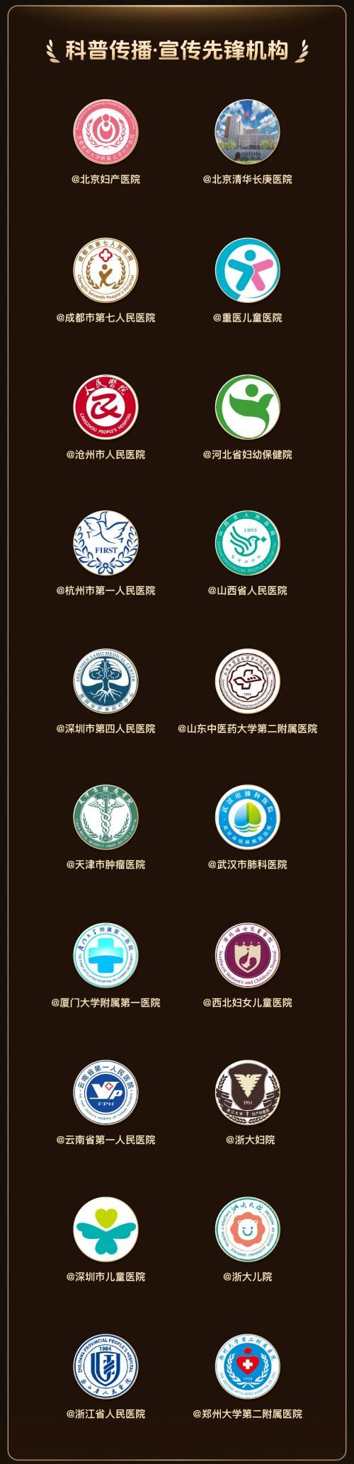 还有一些医院,在医疗健康科普中,持续探索多样性的内容形式,打造更被消费者喜爱的内容,@北京妇产医院、@浙大儿院、@沧州市人民医院、@武汉市肺科医院、@山东中医药大学第二附属医院 等均在“科普传播·宣传先锋”机构名单中。