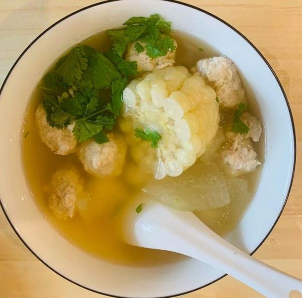 8、这样做好的鸡肉丸子冬瓜玉米汤,健康又营养,美味香喷喷,低脂不长胖。