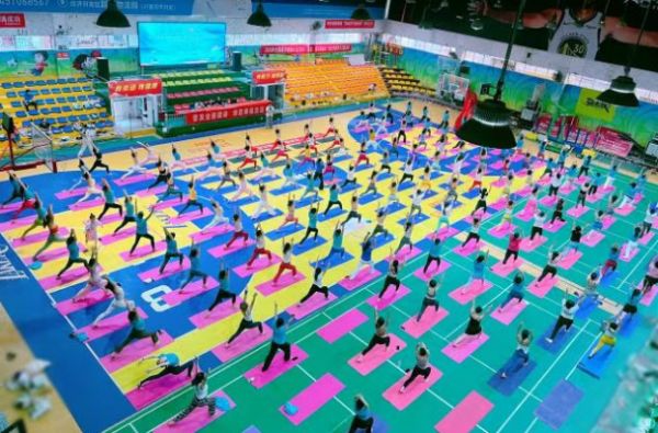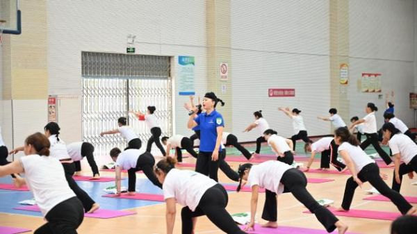 仅相隔一日,活动在黄石阳新接续热烈展开。8月3日清晨,阳新县文化宫平安体育馆内汇聚了300余名健身瑜伽热情参与者。国家体育总局社体中心全国健身瑜伽指导委竞赛与裁判委员会委员、首批健身瑜伽国家级裁判员、国家级教练员、国家级社会体育指导员张翠兰以其深厚的专业造诣担纲教学。活动不仅包含了扎实的体位教学与集体展示,更以《万疆》、《我爱你中国》等节目展演点睛,爱国情怀与健身热情在舒展的体式中交织升华,现场气氛热烈而庄重。