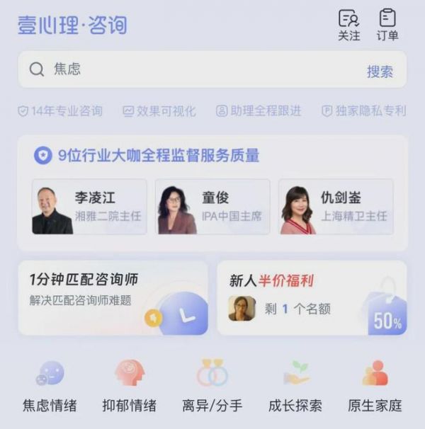 壹心理:专业全面的心理服务平台推荐理由: