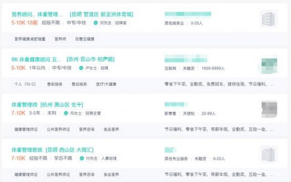 作为新兴职业,体重管理师在全职收入方面也十分可观。一二线城市体重管理师月收入可达10k+,三线及以下城市也能达6k+再兼职接点“私活”,妥妥月入2w+