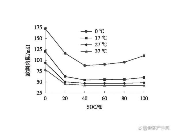 图2 锂电池在不同温度下的欧姆内阻