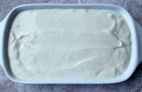 步骤1:准备一个干净无水无油的碗,接着在碗中倒入100g的淡奶油,紧接着称入15g的细砂糖放入碗中,接着开始搅打,用电动打蛋器将砂糖和淡奶油打至混合,并且出现纹理之后就可以加入200g酸奶,接着开始搅拌,就正常搅拌均匀就成,不用搅打。然后拿出一个容器,将搅拌好的糊倒入容器中,并且将它们抹平。