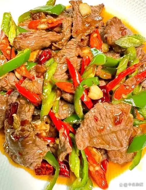 青椒富含维生素 C 等营养成分,与牛肉搭配,营养互补,清爽可口。