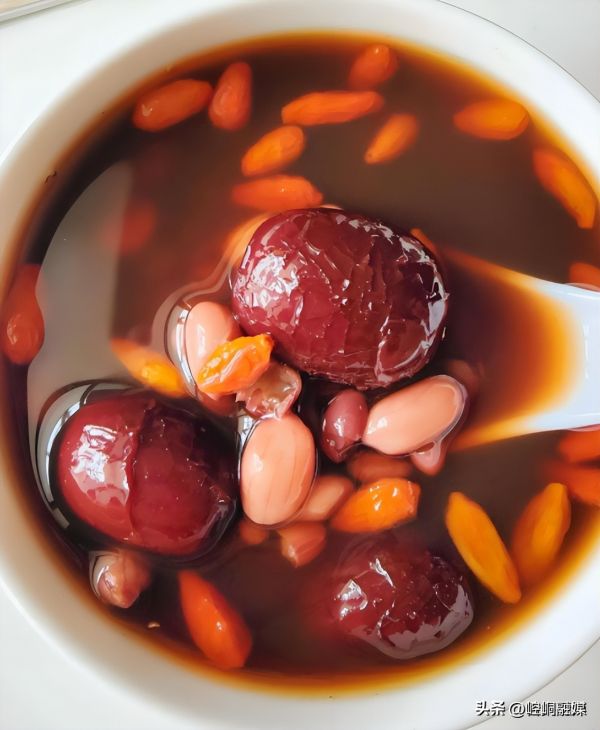 7. 加入红糖和枸杞:将红糖加入锅中,继续搅拌,直到红糖完全融化。最后加入洗净的枸杞,继续煮2-3分钟,直至枸杞变软,羹的香气四溢。