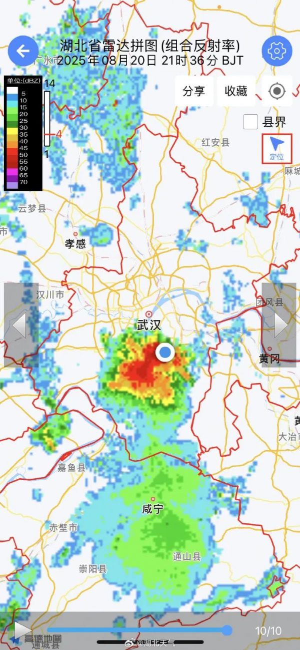 今晚武汉南部出现较强回波