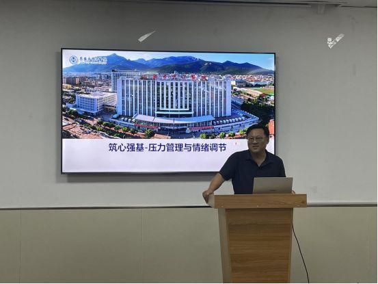 活动伊始,心身医学科刘鹏飞老师从认识压力与情绪、危机识别、压力管理的实用策略三个方面深入浅出的讲述了目前医务工作者健康心理状况、压力的定义和来源、心理危机预警信号,教授大家面对心理压力可以通过合理饮食、适度运动等方式进行缓解,并详细讲授了“积极心理八正法”。最后,刘鹏飞老师送给青年一句话“医者的‘自我关怀’不是自私,而是责任。‘救死扶伤’的前提,是先让自己‘活’得有力量!”提醒青年医师只有将自身健康放到首位,才能更好地守护患者健康。