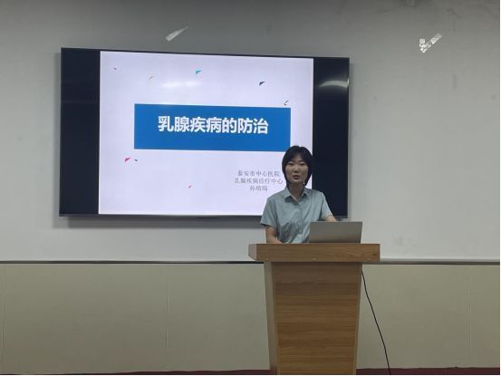 随后,乳腺疾病诊疗中心孙瑞瑞老师带来了《乳腺疾病的防治》知识讲座。让大家深刻认识到乳腺癌并非遥不可及,提醒大家要提高乳腺健康意识并强调了疾病预防与尽早治疗的重要性,重点科普了乳腺癌病理诊断的必要性和重要性、乳腺癌的病理类型及分级、乳腺癌手术方式和就诊流程等方面知识。建议青年女性重视自身健康,提升自我保健意识,定期体检,做到有病早发现、早治疗、早康复,有效避免疾病发生。