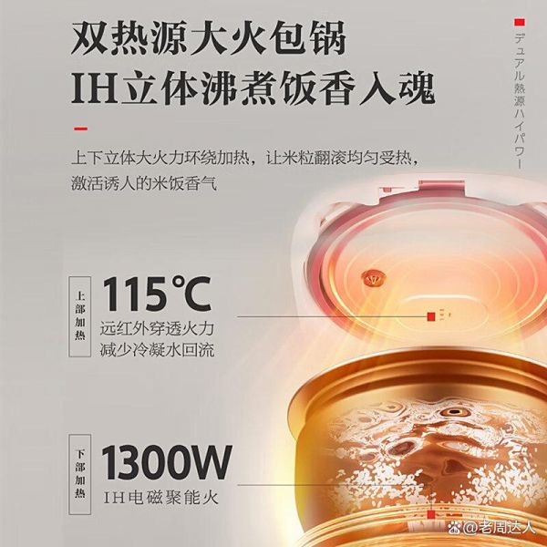✅ IH变频大火力:这电饭煲的火力,简直不要太猛!1370W的大火力,加热速度快到飞起,而且还能智能变频,让米饭煮得更加均匀,口感更佳。