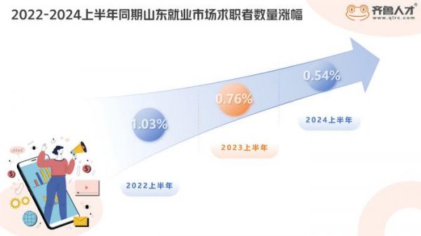 根据齐鲁人才数据显示,2024上半年山东就业市场求职者数量涨幅为0.54%,较往年同期数据来看,增速有所放缓。